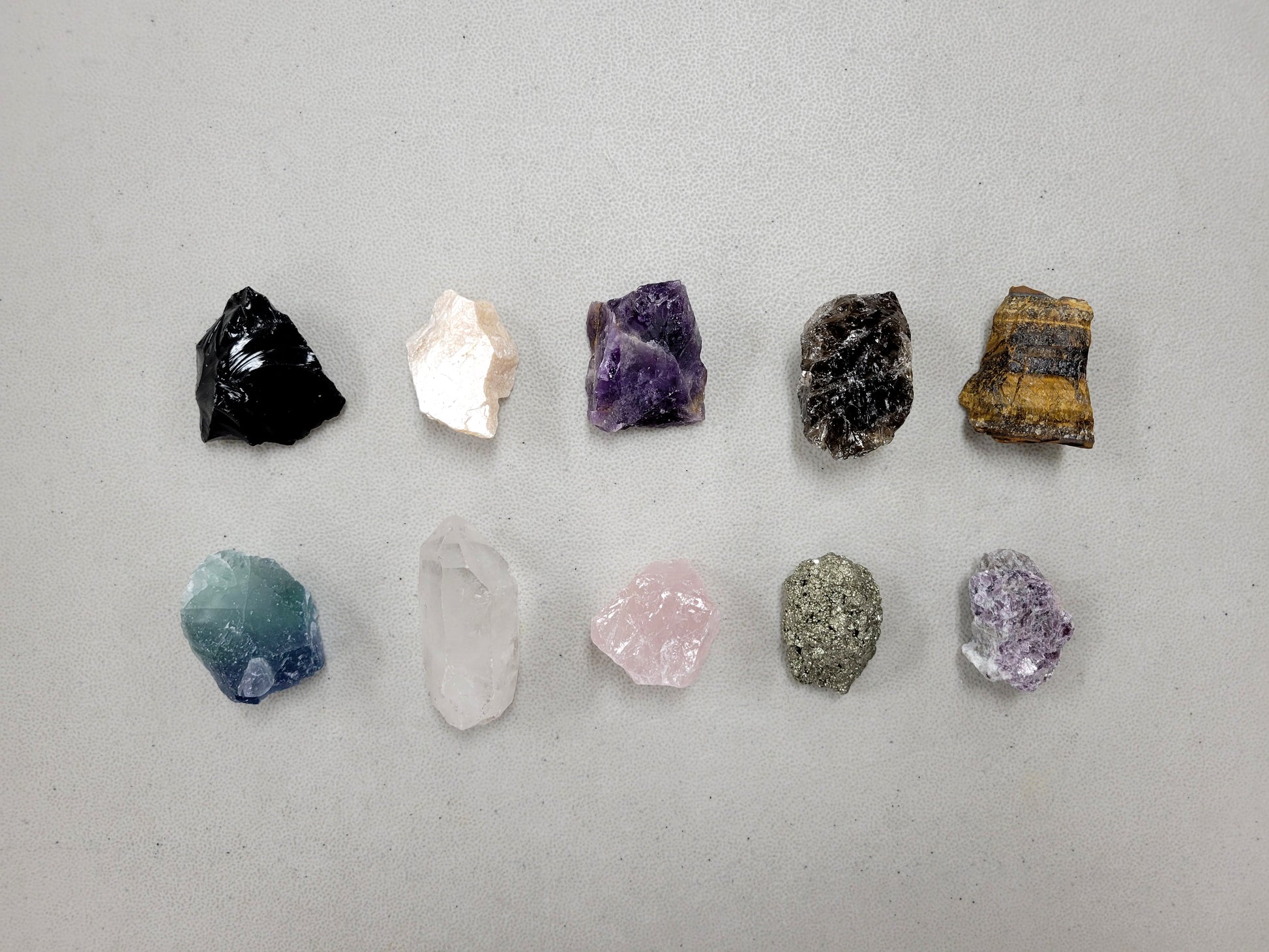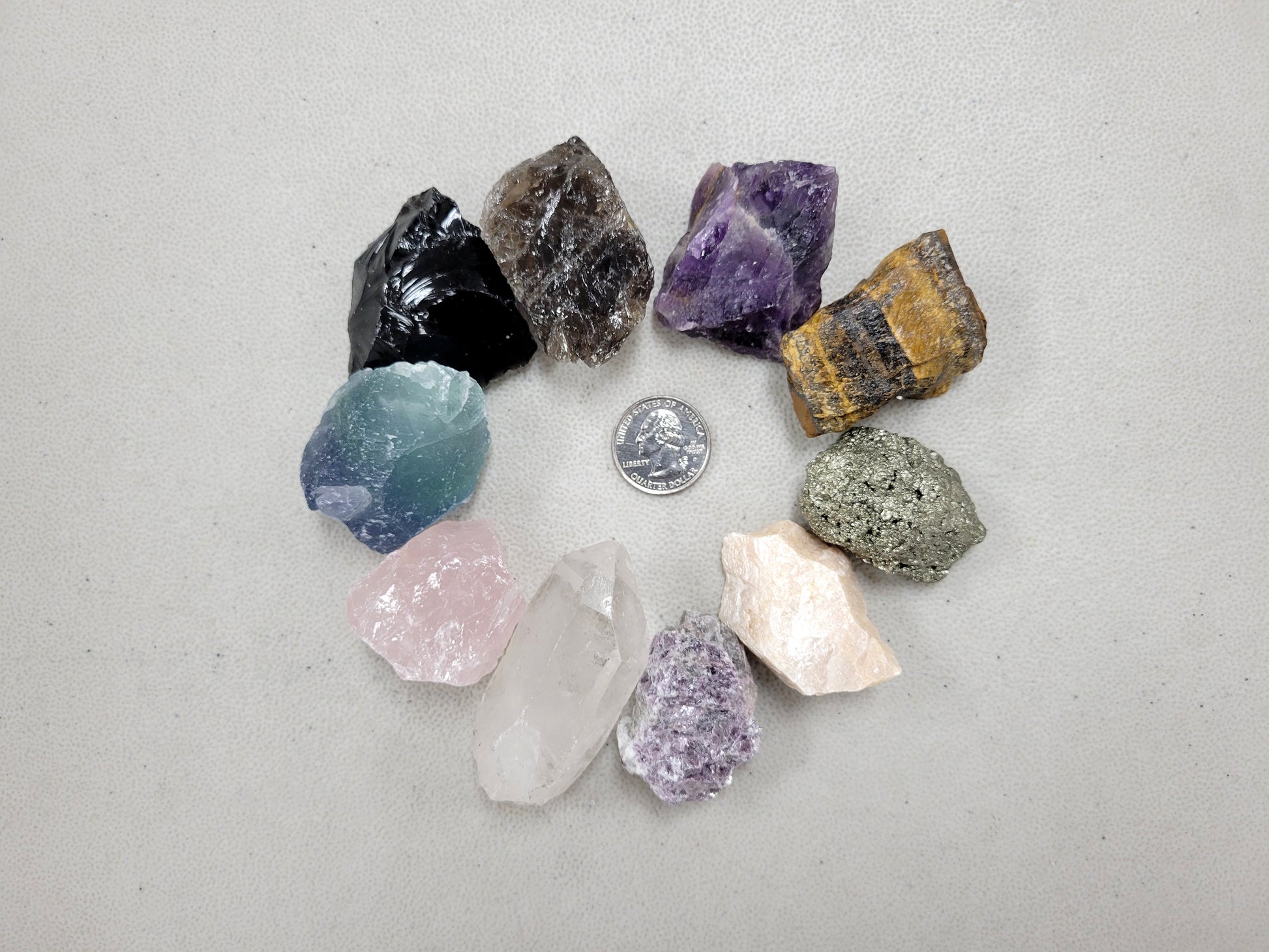 Whether you're a crystal enthusiast or simply appreciate the natural beauty of these stones, our 10 Raw Crystal Starter Gift Set adds a touch of nature's elegance to your surroundings. Each crystal is unique, and their aesthetic appeal, as well as potential benefits, make them a delightful addition to any space. Explore the world of crystals with this enchanting collection and discover the wonders they can bring to your life.
