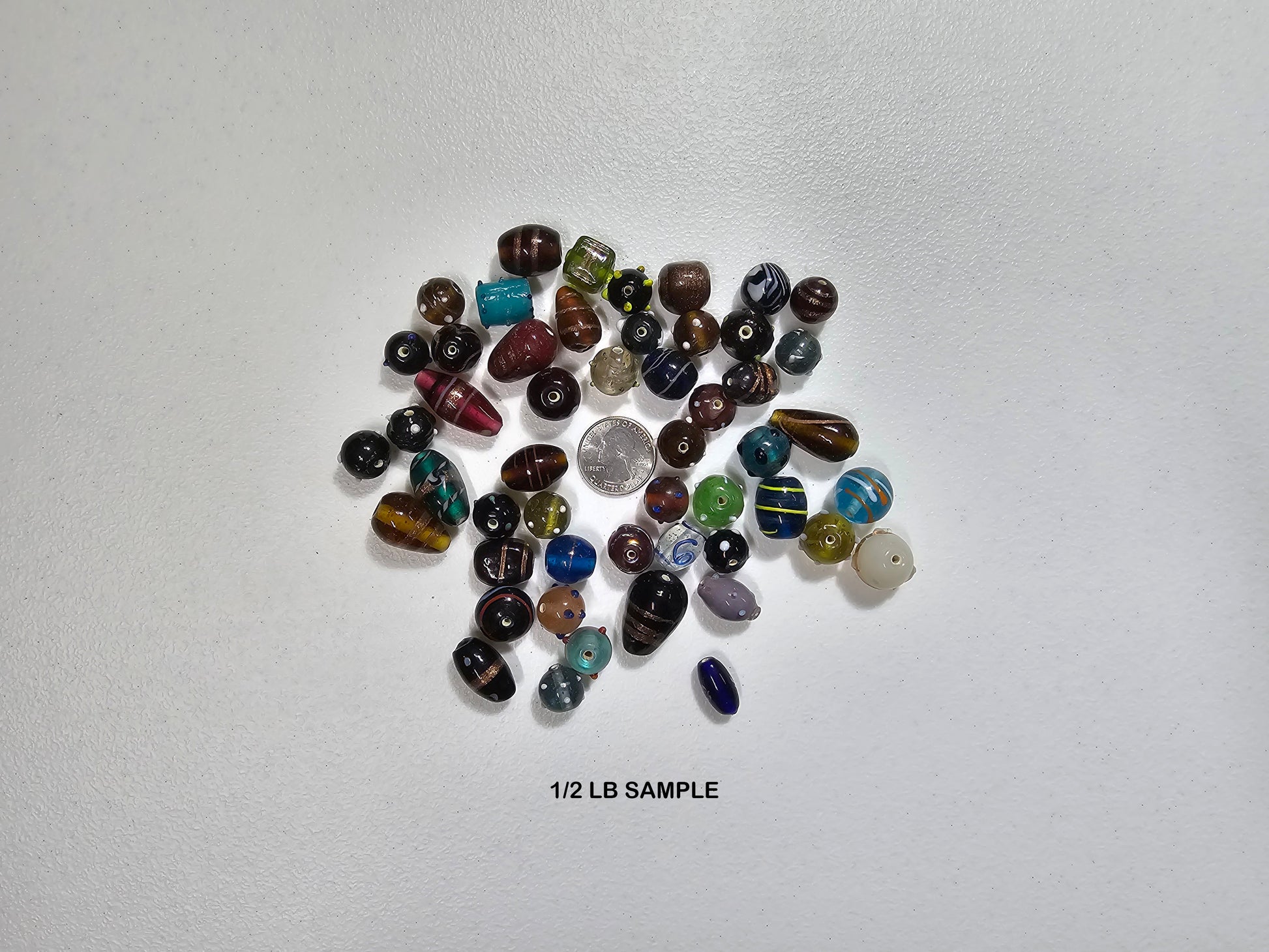 1/2 LB will have around 28 to 32 beads.