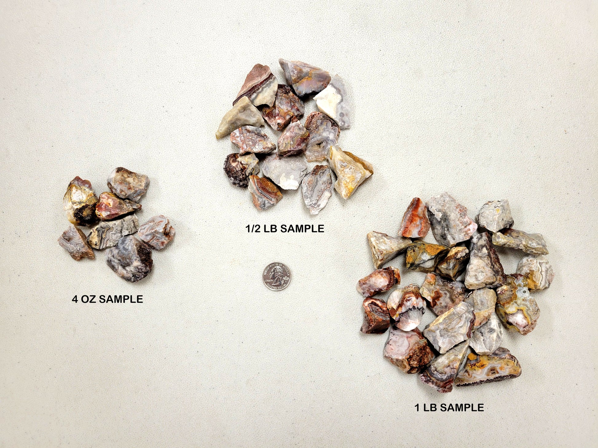 These are A-grade Crazy Lace Banded Agate rough crystal stones imported from Mexico. These have been broken down to tumbler size and each piece measures between 3/4 inch to 2 inches.
