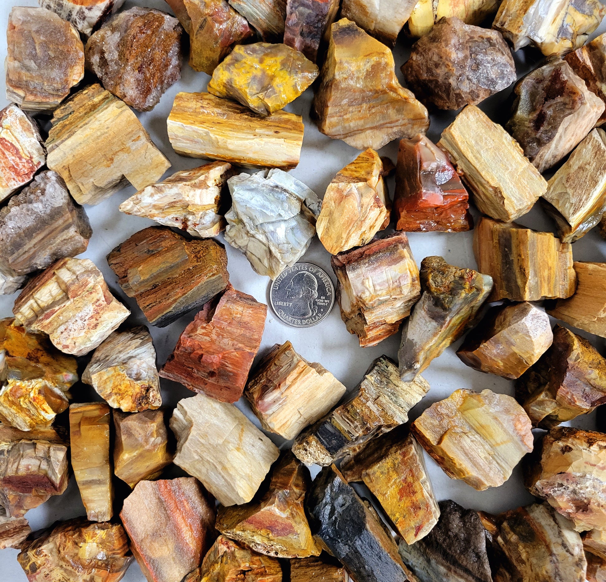 These are Petrified Wood raw specimens from Madagascar. Each piece measures between 1" to 2"