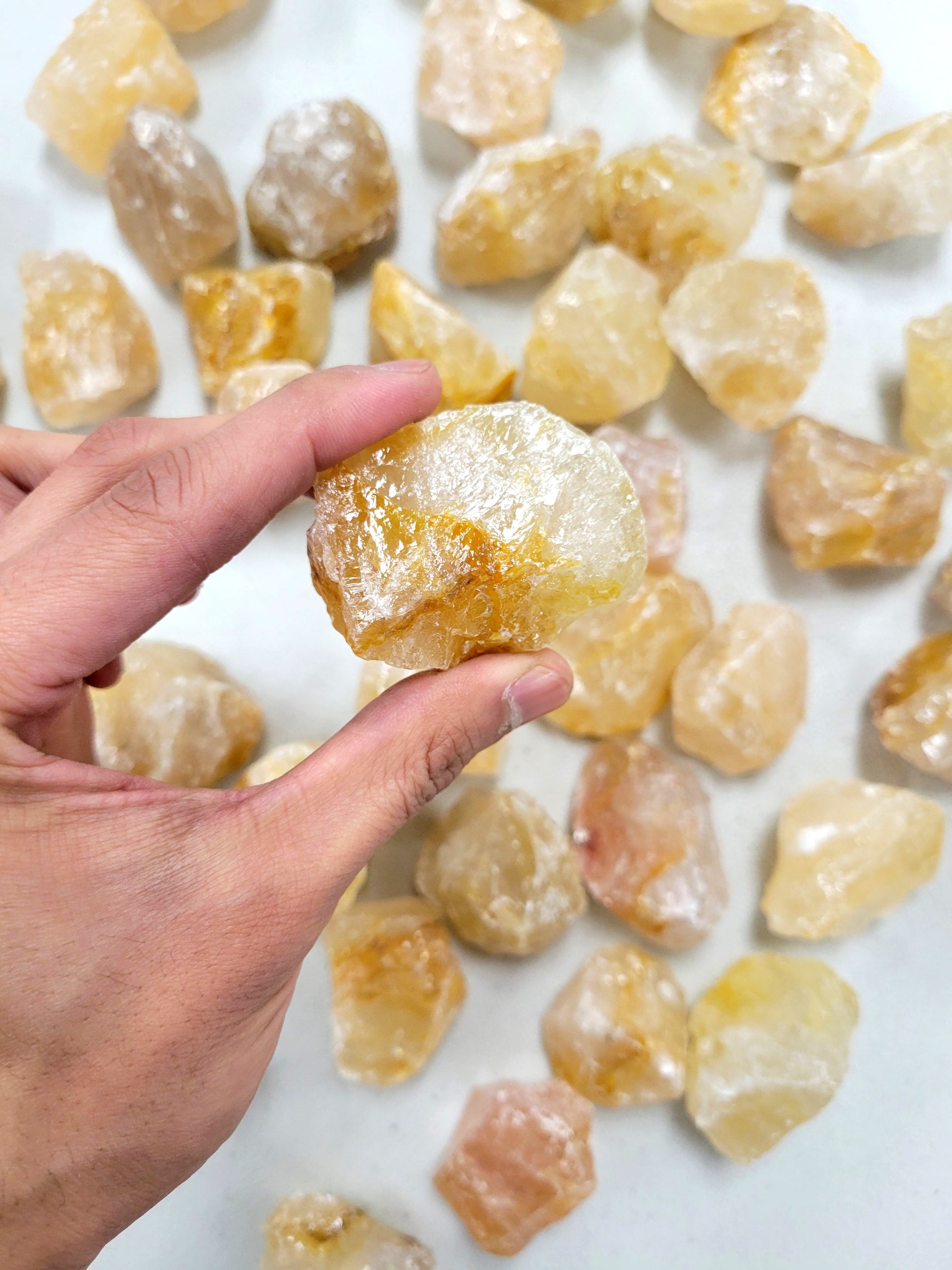 These high vibration crystals get their golden glow from the the iron oxide minerals inclusions. It has a lot of healing benefits and a quick search online will give you tons of information about this crystal.