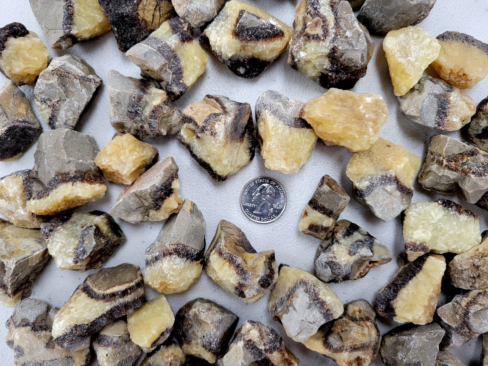 These are raw Septarian crystals from Madagascar. Each piece measures between 1 inch to 2.5 inches.