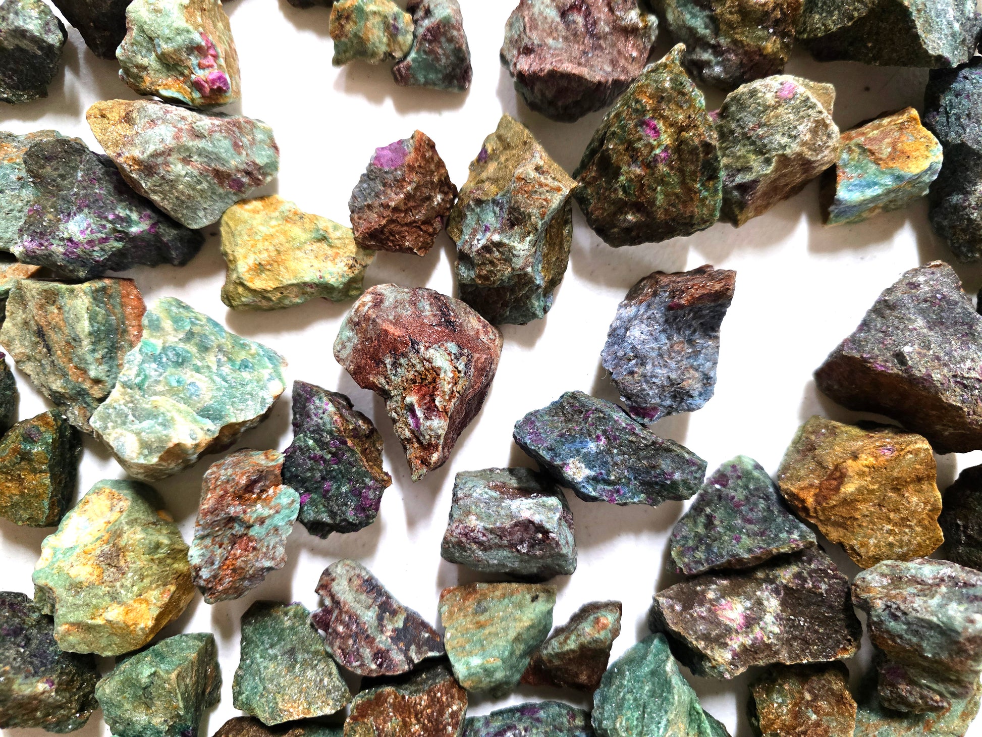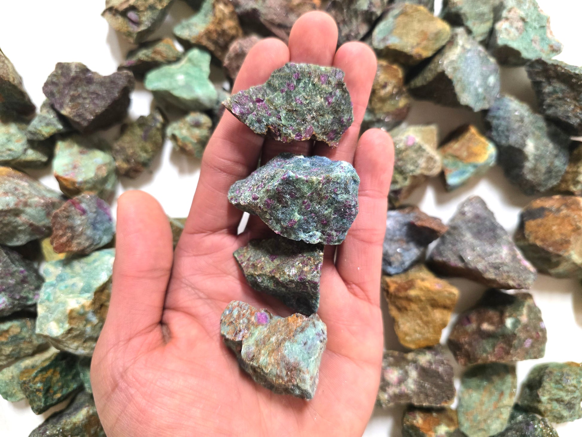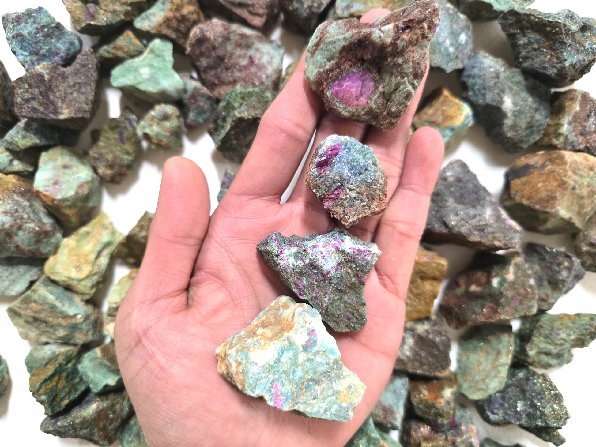 These raw stones are perfect for jewelry making, wire wrapping, rock tumbling, mosaic art, resin projects, and home décor displays. Their striking mix of deep green Zoisite with pinkish-red Ruby inclusions also makes them a popular choice for collectors and crystal enthusiasts who appreciate unique, natural mineral combinations.