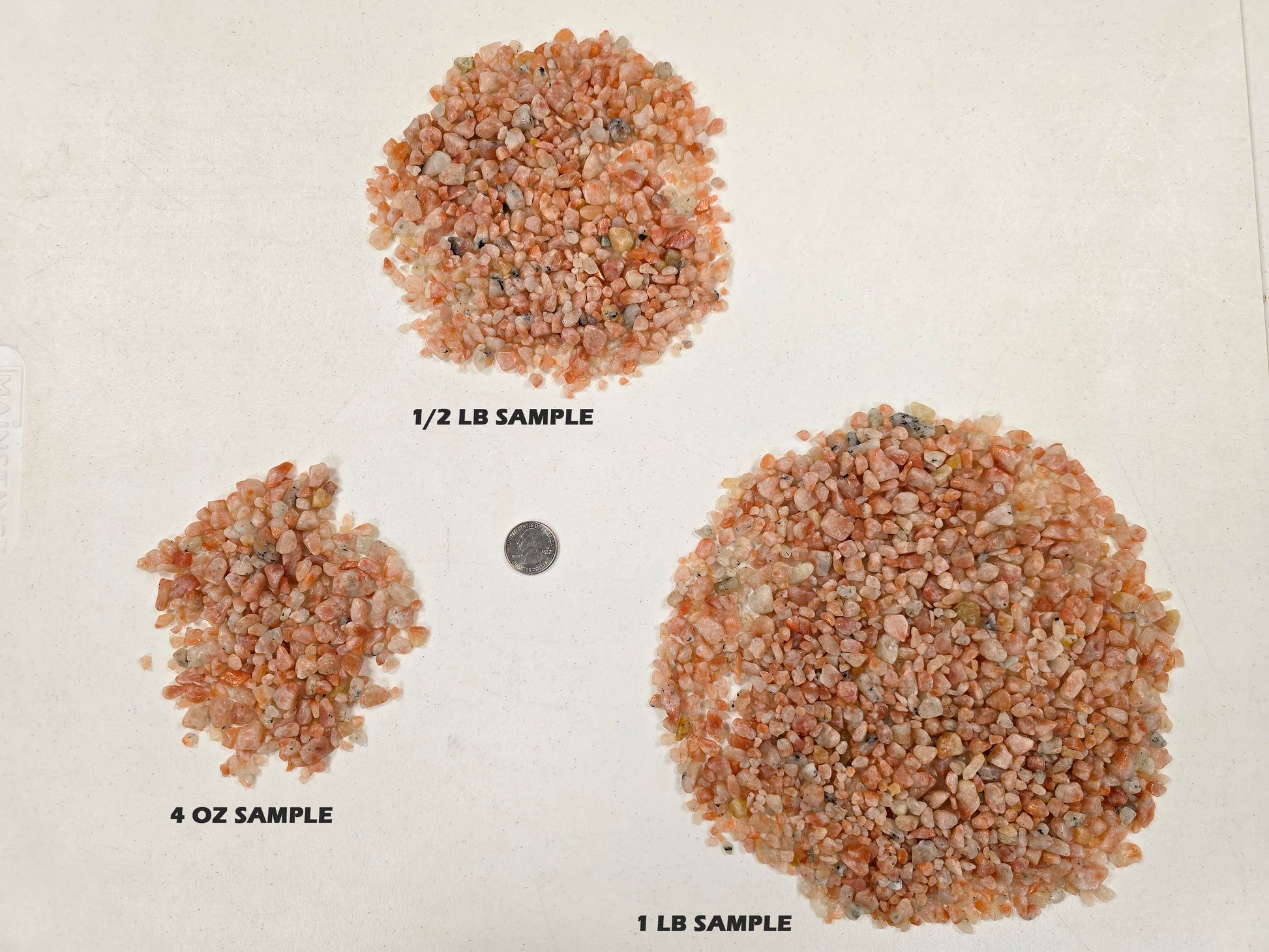 These tumbled Sunstone chips from India are a versatile material for a wide range of craft and DIY projects. Each batch features naturally polished stone chips with soft peach, orange, and cream tones, along with occasional natural inclusions that add visual interest and texture.